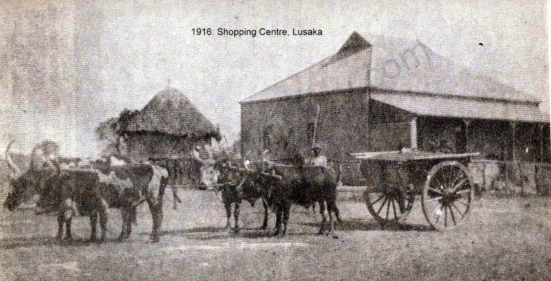 1912-Lusaka now home to a hotel, several stores, three maize mills, and a school adjacent to the Railway Station including Lusaka Trading Company Store.