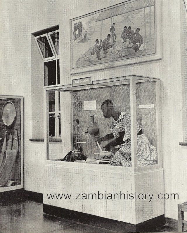 Two years before that the Government had included £200 in the estimates for the purchase of native arts and crafts, mainly it is thought, to ensure that some good pieces remained in the country when so much had already been taken out of it. Collecting started only just in time and although we have been collecting assiduously ever since, some of our best material was obtained in the early years. This early specialisation in the collecting of human handicrafts together with our other aim, that of collecting relics and documents connected with Livingstone and Rhodes, set the pattern for the Museum's future development and when it was incorporated with the Rhodes-Livingstone Institute, also founded by Sir Hubert Young, to undertake social research in the British Central African territories, the immediate development policy was set. This was simply to specialise in the collection of material relating to the origins and development of Man in Northern Rhodesia and thus to reveal as much as we are able of the history and culture of the various peoples who have inhabited the country from the first beginnings, approximately half a million years ago, to the present day.