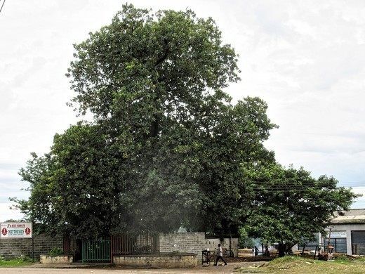 The Slave Tree is near the center of Ndola along Makoli Avenue. It is surrounded by a small fence with an open gate. The tree can be visited at any time.