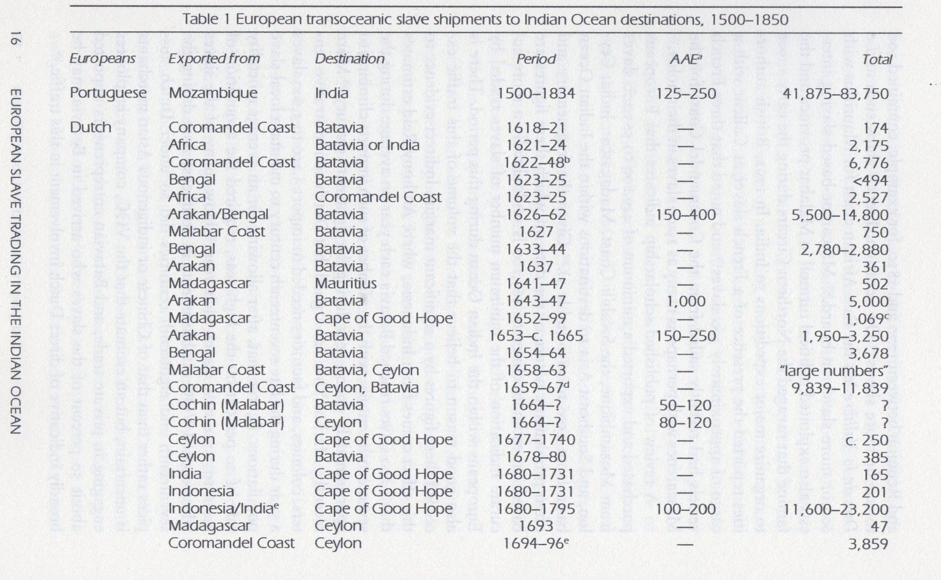 Between 1500 and 1850, European traders such as The East India Company shipped hundreds of thousands of African, Indian, Malagasy, and Southeast Asian slaves to ports throughout the Indian Ocean world. The activities of the British, Dutch, French, and Portuguese traders who operated in the Indian Ocean demonstrate that European slave trading was not confined largely to the Atlantic but must now be viewed as a truly global phenomenon.