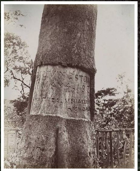 Circa 1873: The site at Chitambo, Lake Bangweulu, Zambia, where Scottish explorer Dr David Livingstone's heart lies buried. The portion of the tree carrying the inscription was cut down and is now deposited with the Royal Geographical Society in London. Livingstone (1813 - 1873), first visited Africa as a missionary where he visited fellow Scot Robert Moffat, and married his daughter.